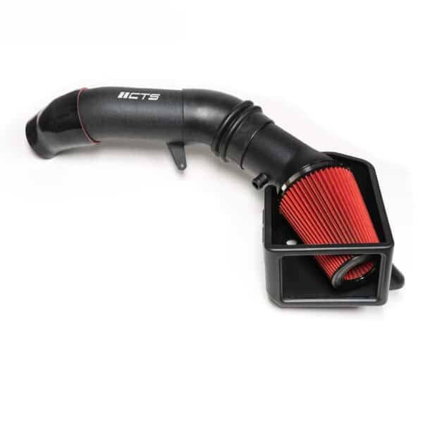 Deze intake van CTS Turbo heeft een zeer grote diameter en zorgt voor een vermogenstoename en toename in koppel, maar ook voor een zeer agressief aanzuiggeluid van de turbo.