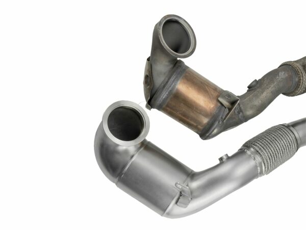 De beste doorstroming en vermogenstoename verkrijg je bij een downpipe zonder katalysator. Afhankelijk van je wensen kun je de geschikte katalysator kiezen bij het bestellen van deze downpipe.