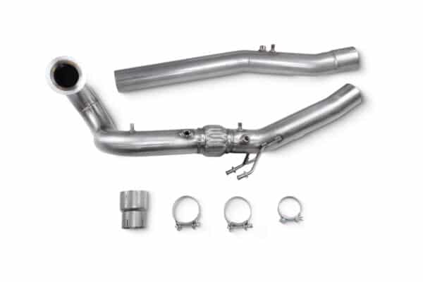 De downpipe is een vervanging voor de originele downpipe voor modellen die standaard voorzien zijn van een katalysator en OPF/GPF filter. Doordat deze downpipe een grotere diameter heeft dan de originele (3,15 inch/80mm) en geen OPF/GPF filter meer heeft, wordt er een snellere afvoer van de uitlaatgassen bij de turbo verkregen. Dit heeft niet enkel het voordeel dat het vermogen zal toenemen, maar ook dat de turbo minder weerstand zal ondervinden. Dit komt de levensduur van de turbo ten goede.